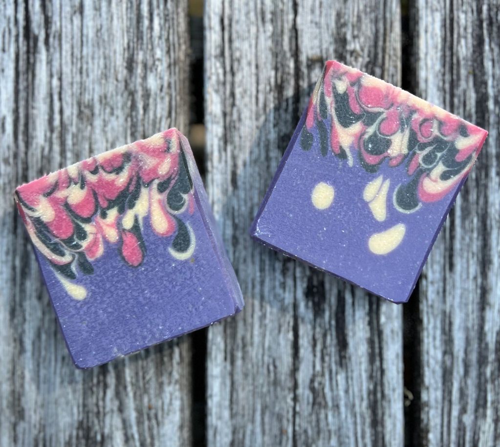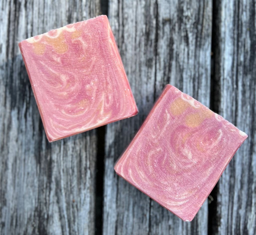 With your choice of fragrance oil (30+ to choose from) and mica coloring. (Essential oil and/or all natural colorants available for an additional cost).